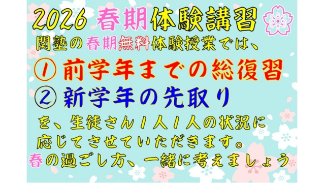 ☆2☆【3/1up】「関塾春の体験講習」